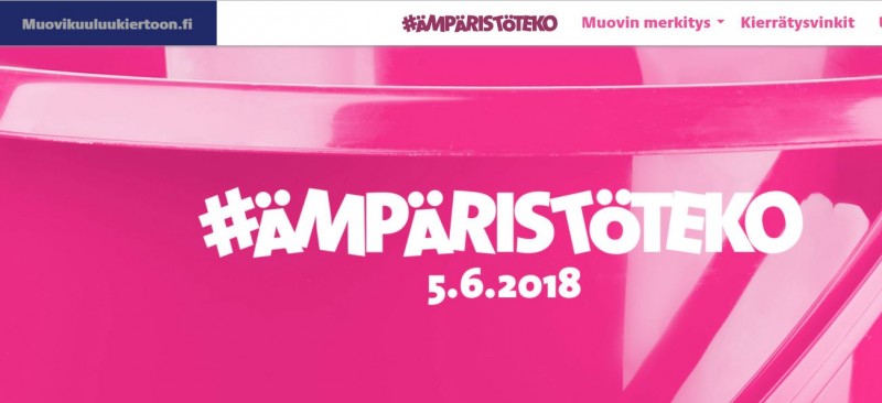 Muovi kuuluu kiertoon. Tiistaina, Maailman ympäristöpäivänä 5.6.2018 viidellä paikkakunnalla järjestettävä Ämpäristöteko-tempaus antaa kuluttajille mahdollisuuden tuoda kierrätykseen kovamuoviset tuotteet. Pulkan puolikas, muovinen terassituolinrähjä, vanhat pakastusrasiat ja rikkoutuneet ämpärit ovat hyviä esimerkkejä kovamuovituotteista, jotka voi tuoda keräyspisteisiin, sanoo toimitusjohtaja Vesa Kärhä Muoviteollisuus ry:stä.