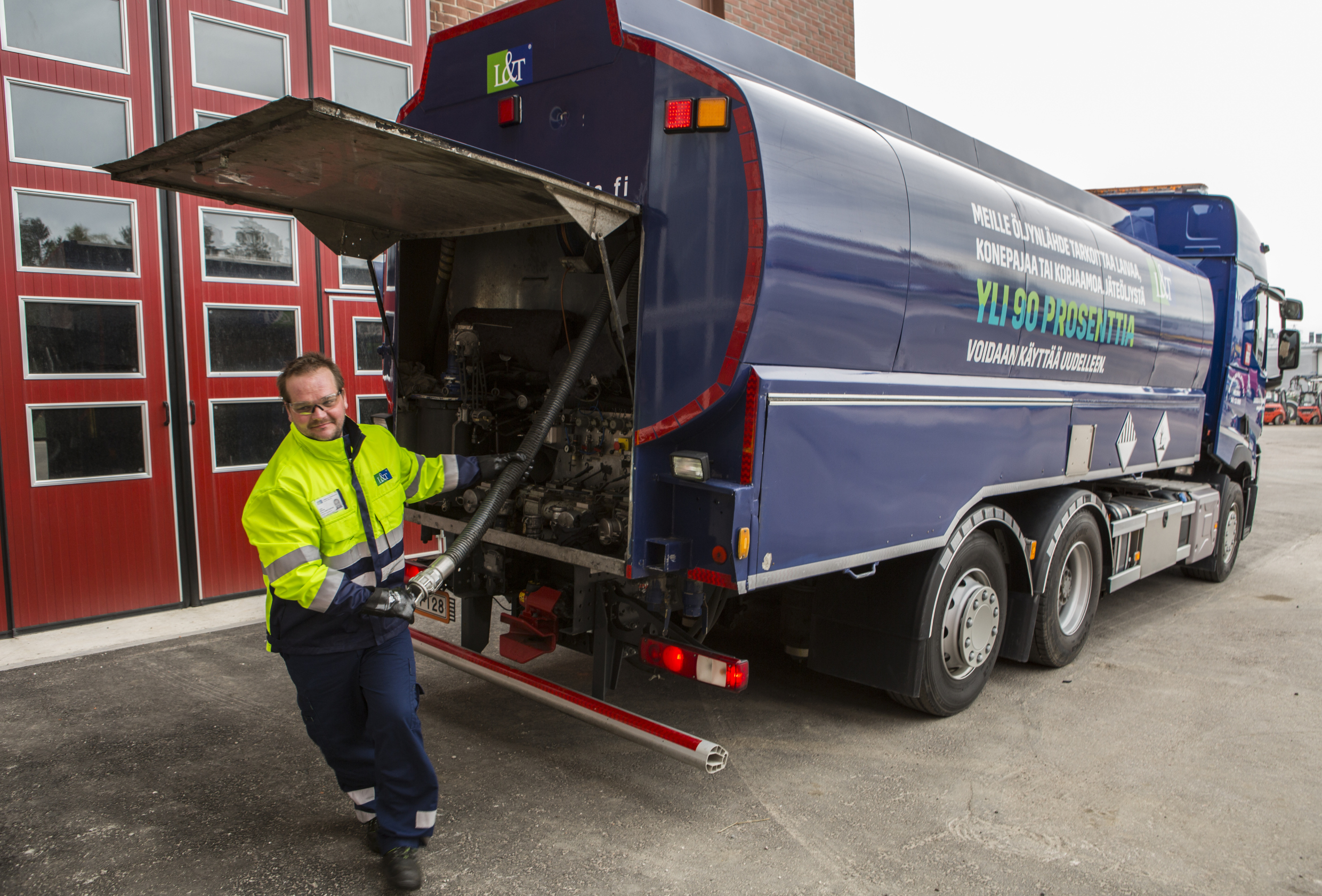 Öljyjäte noudetaan veloituksetta ilman käsittelymaksuja, kun noudettava määrä on vähintään 200 litraa. Jäteöljyä kerätään säilöautolla ympäri maata. Kuvaaja: Jenni Pohtala, kuva: Lassila & Tikanoja