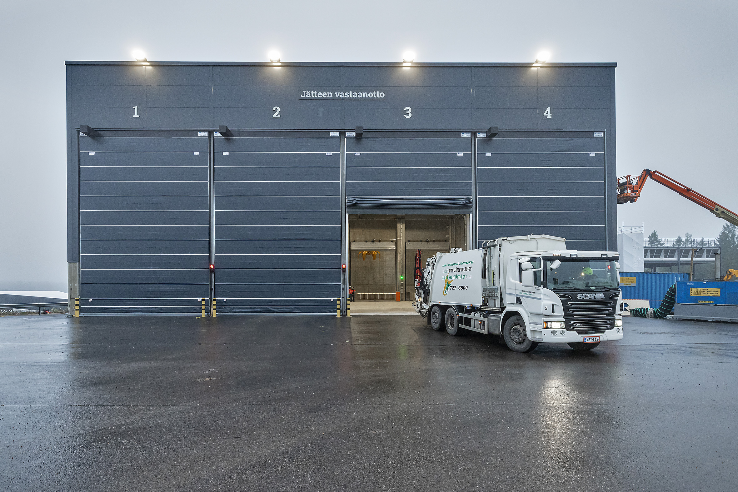 Jätettä toimitti laitokseen ensimmäisenä paikallinen jätteenkuljetusyritys Salon Hyötykäyttö Oy keskiviikkona 25.11.2020. Kuva: Timo Jakonen