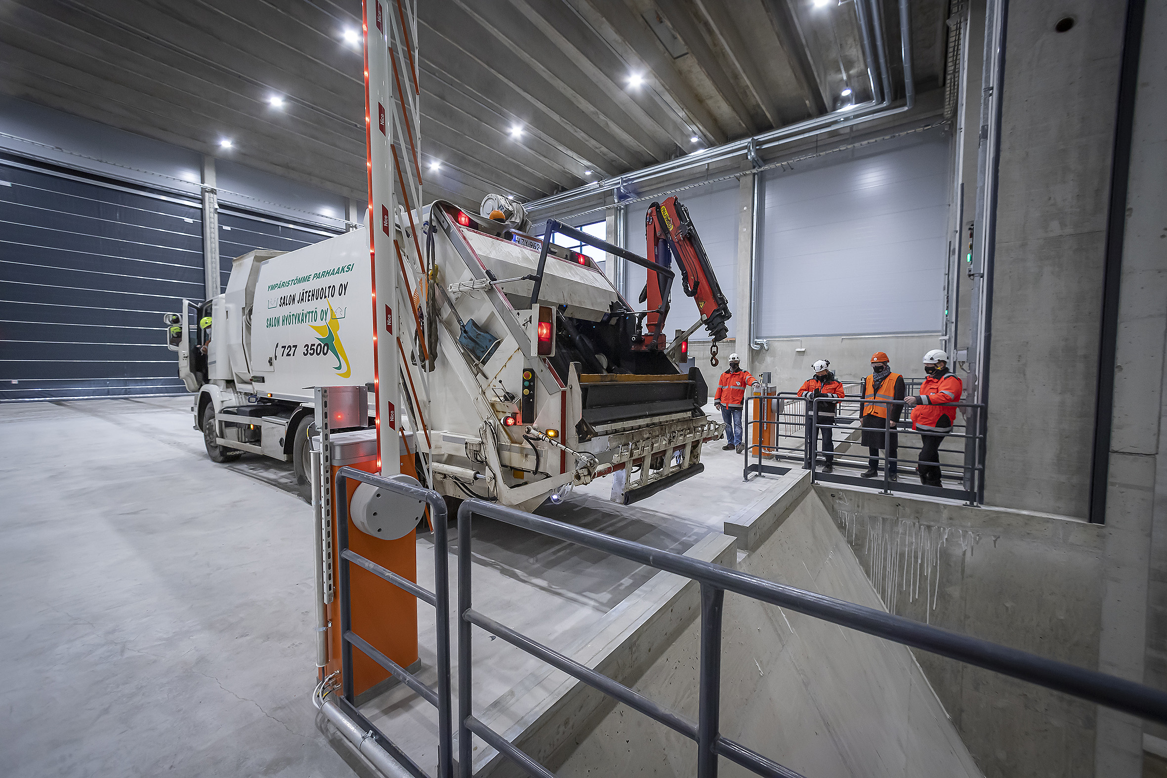 Ensimmäisen jätekuorman purku jätebunkkeriin. Kuva: Timo Jakonen